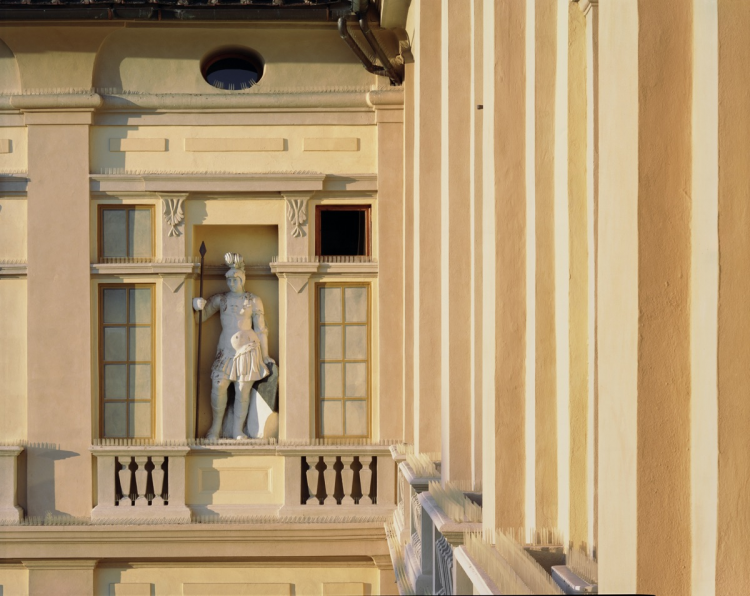 The sequence entitled Apparitions confirms Tatge’s love of chance epiphanies, such as those one might intercept in the most disparate scenes of our visual experience. And also his ironic attention towards the emergence of the illogical in so much daily life. A non-aggressive irony employed to capture the most singular conglomerations, as in Junk Warehouse, where a Canovian Venus is found looking much like the sister of Pistoletto’s Venus in Rags. Or as in the Pink Bomb, hanging mid-air like a radical architect’s utopian vision. Or again in the billboard Banana that, with its alienating Pop extroversion, stands as the backdrop of an urban vegetable garden...