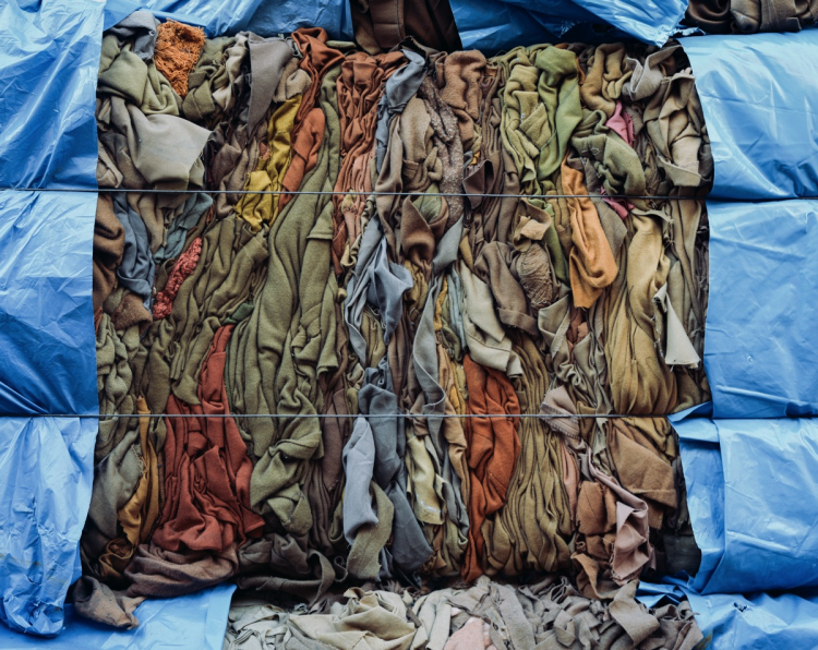 One series of Tatge’s color photographs adds strong elements of novelty to his artistic research. These are the pictures of the so called “cenci”, old rags regenerated for the production of low price new textiles. He took these inside the last surviving textile manufacturing plants in Prato, which are still engaged in this virtuous and innovative method of recycling that used to sustain the local economy and which is now in a state of profound crisis and on the verge of disappearing. The images of heaped, stacked and packed cenci divided by color and material by the last old workers capable of recognizing their various typologies by touch, are striking for their dramatic and at the same time composed beauty. They quietly tell us about the real world through a melancholic gaze full of pietas towards the everyday objects that inhabit it.